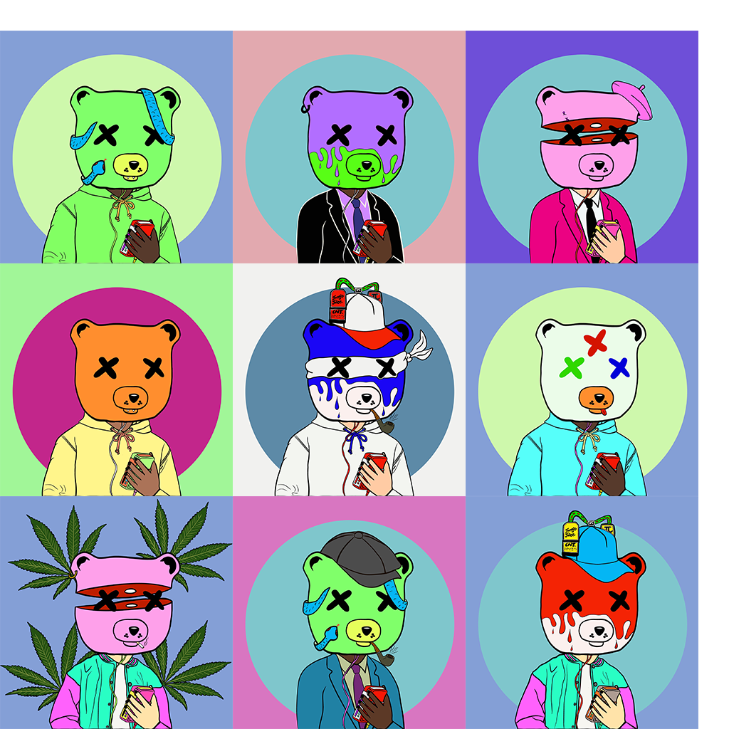 JUNGLE JUICE NFT is a platform for the community. We take pride in creating visuals for accomplished artists. Previous artists we’ve worked with include; Dababy, Kevin Gates, Seddy Hendrinx, Yung Bleu, Moneybagg Yo, Gucci Mane, OG BOOBIE BLACK, & many more. We created “Spliffy The Bear” to express the variety and freedom within music. Our plan is to collaborate with many artist to offer YOU, the community exclusive drops, creative content & dope ass art.